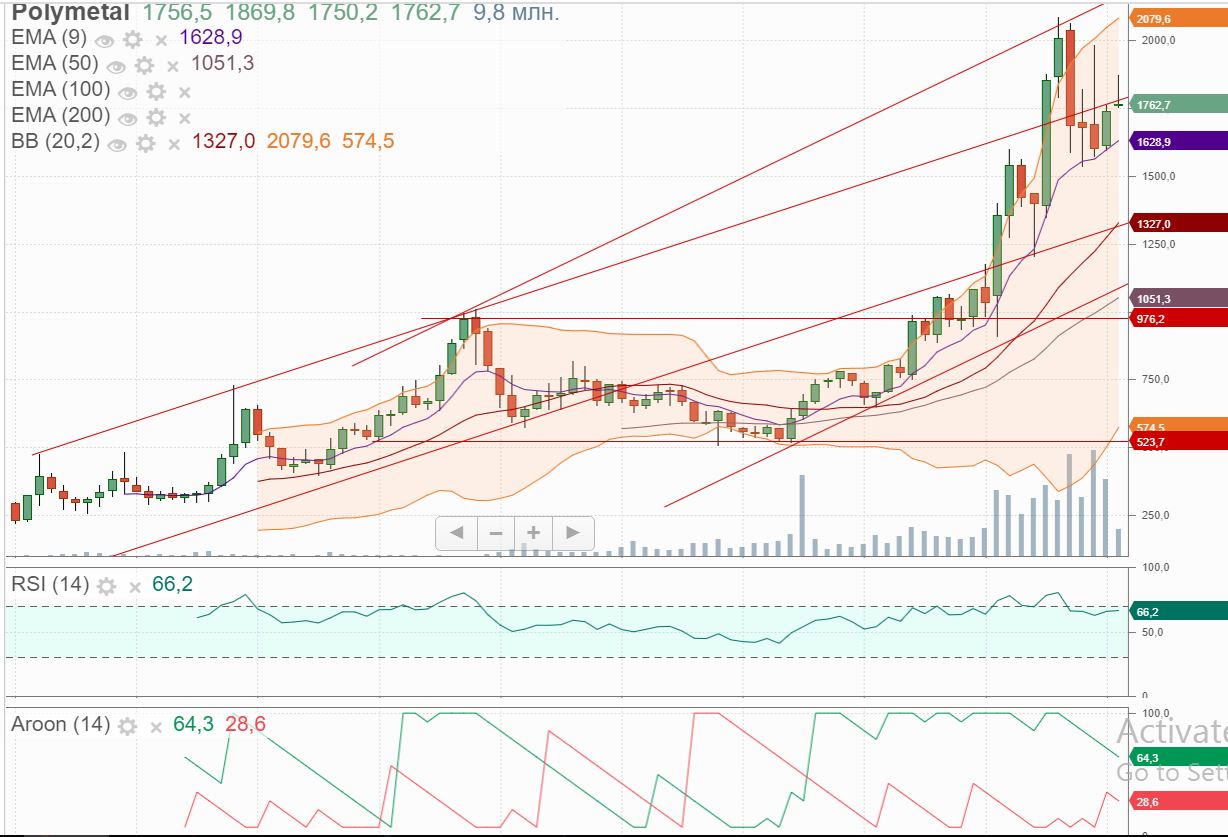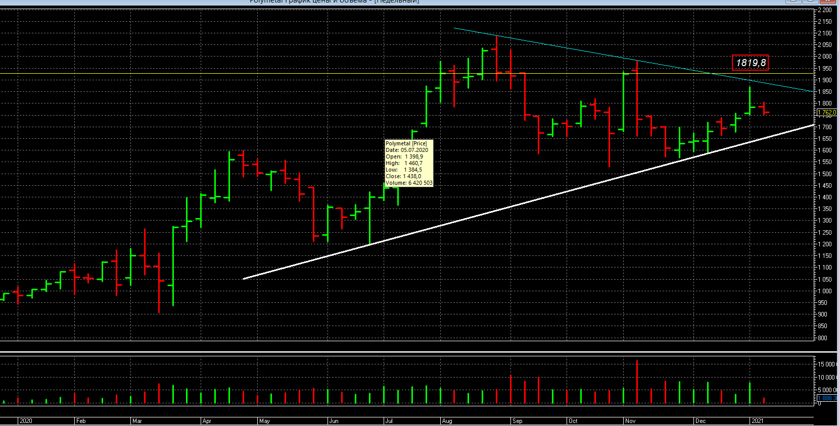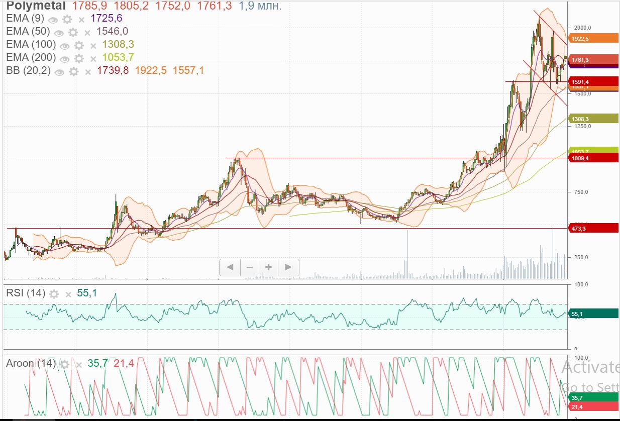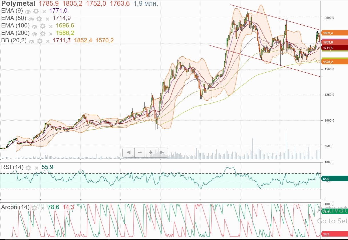 Среднесрочно в Полиметалле вижу нисходящий канал от августа месяца. Сигнала разворота, пробоя пока не вижу. И эта неопределенность несколько пугает.