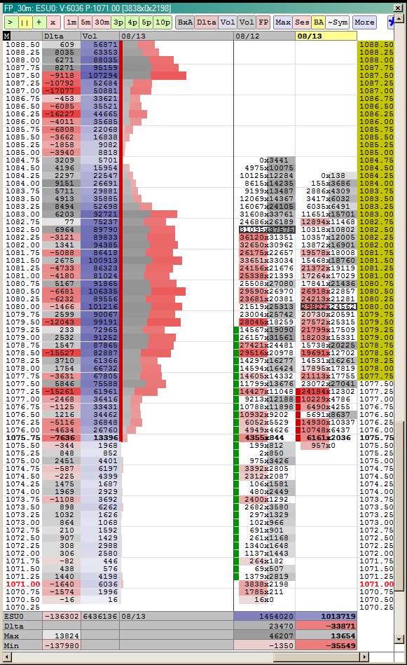 Разворот вниз сделали в три захода. я входил один раз лимитником 1084.00 выделено синим, стоп 2 тика, тейк 4 тика.