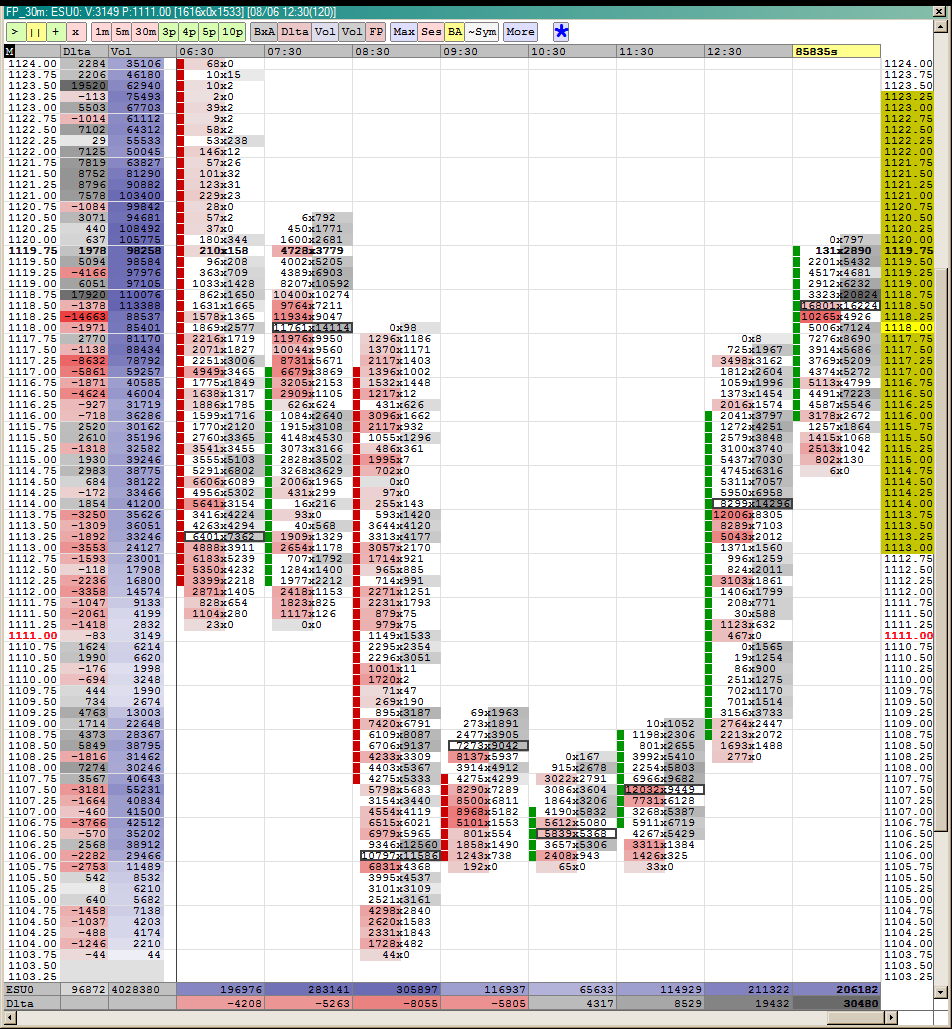 Сигналом который окнчательно утвердил что надо идти лонг, была большая продажа, которая не смогла двинуть цену ниже. картинка 2. На картинках плохо видно,а в динамике совсем другое дело. Лонг по 1120.50 счел брать опасно. Зато над 1122.25 были стопы и желающие войти на пробой. С их поддержкой сделка менее рискованная. Лента затем подтвердила.