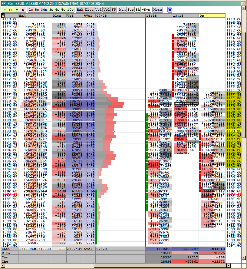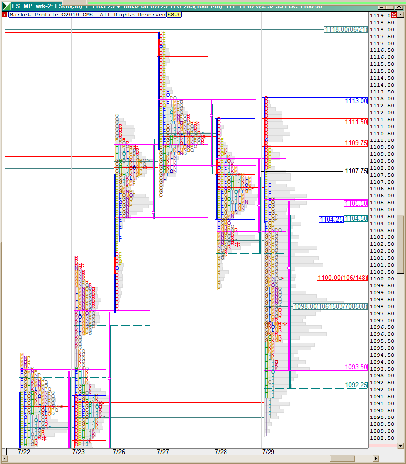 Ничего не изменилось. Сегодня было две плохие новости. В результате еле 1100 протестировали. Программы, однако, в конце дня появились. Больше на селл, чем на бай, естественно. Завтра новости ещё тяжелее. Так как 1100 устояло, повторю, что ничего не изменилось. Ждём, чтоб рынок выбрал направление.