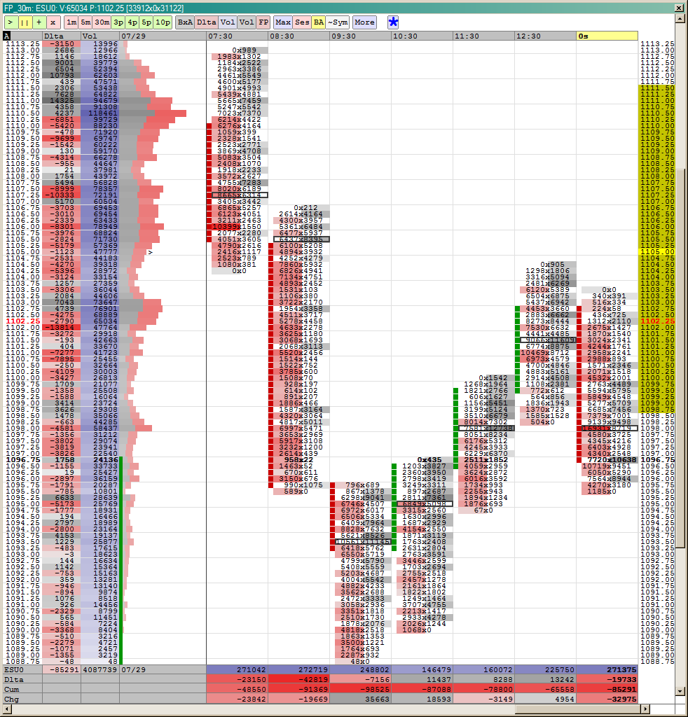 Валерий.....Если вы skalper высшего пилотажа,то могли сделать 1-1.5п. на етом.,но делать позицию на етом ,просто опастно и безмысленно(риск сильный,и сагналов так таковых я не вижу)!.........1- маленькие контракт(от 10) по биту и аску (здоровый тренд)...1093 блок по биту потом еще....СМТОРИТЕ внимотельно спред во времени формиривания етих контрактов -ето большой спред и не сильный объем ,,,один в сумме 400 другой через 2мин 200к"......вам оно ничего не дяет ,ждите вам ненужно играть с толпой(риск сильный).........Хороший входа в маркет я сильно и не невидел(хорошое скальпирование можно было делать..)........ А вот в конце вашего видео, на цене 1091.50...а потом 1091.00 ,вот здесь нужно быть готовым,и обратить сильное внимание на ету цену .......уж сильно видно было ,,агрессоров",я так думаю хорошая была ловушка...УдачиВсем привет!! Кому интересно, фрагмент ES за пятницу.