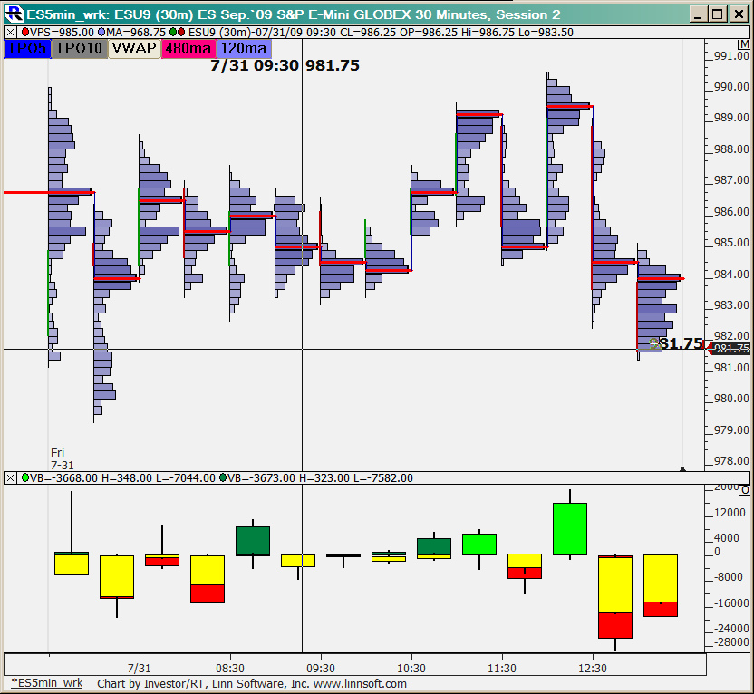 Пока находимся в диапазоне 1ого распределения. Выход вверх будет означать акцепт более высоких цен, выход вниз во 2ое распределение - подтвердит ложный пробой четверга, будет закрыт гэп внизу, а дальше пойдем накрывать Naked POC на 970.