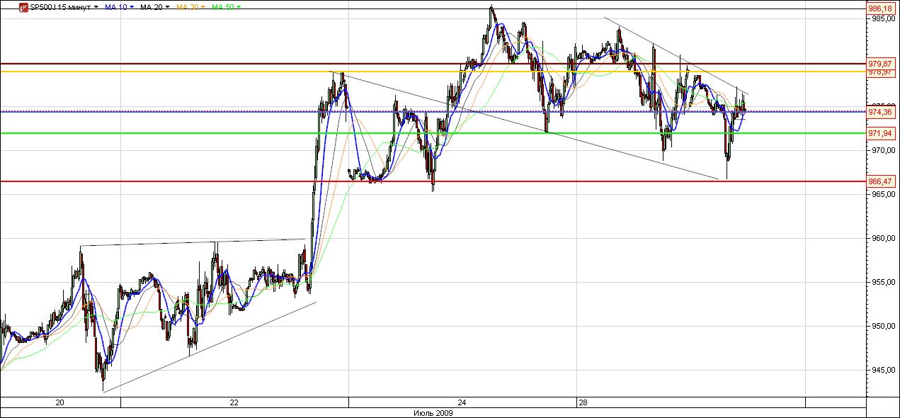 Махали сильно - на уровне 966-967. Абсолютное равенство сторон довольно долго (для такого бодрого спуска вниз). Лонгам сейчас это больше надо. Кто бы мог подумать, что +300 будет новой поддержкой, да ещё такой сильной, да ещё в день, когда вероятность отката была самой высокой за последнее время.Что-то как-то пока не очень похоже. Замах на рубль, удар на копейку.