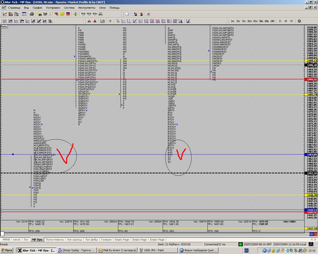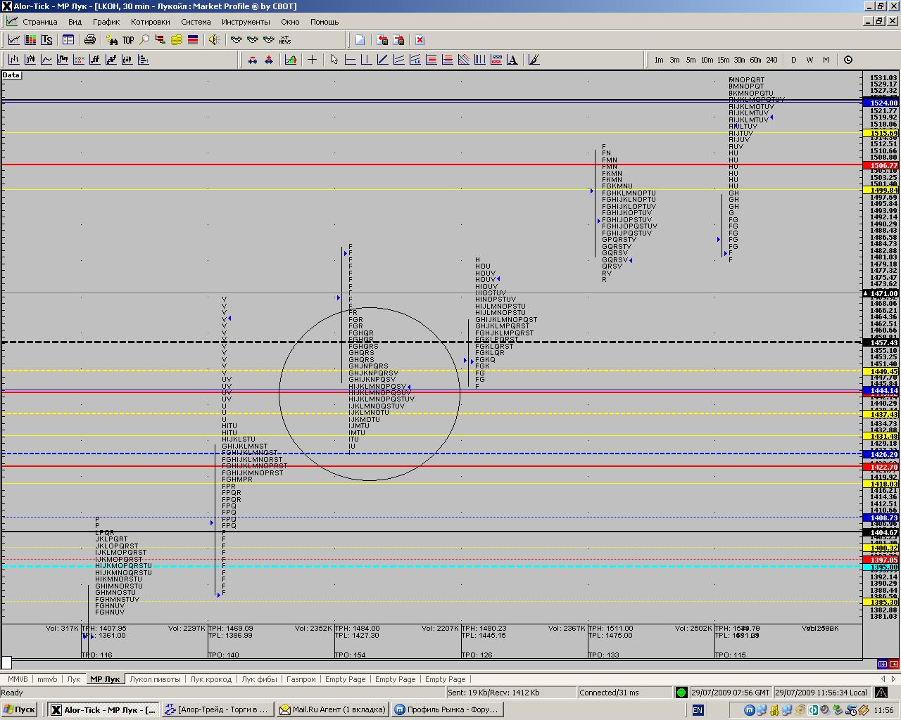 Добрый день. ВСЕ РАБОТАЕТ! Я не знаю какое это число прога не показыват, а искать не охото, обвела в кружок этот день на графике. Нейк Рос у меня только одна на 1443 была (где вторая?), накрыли ее и прекрасно дошло до ВАЛа того дня, он у меня он на 1437. По 1440 брала в слепую, чудная сделка меньше чем за час.Kat, хорошо так в лучке две POC сразу закрыли. А правило-то не работает: 16 июня value area был 1456-1442-1434 - рубля не дошли