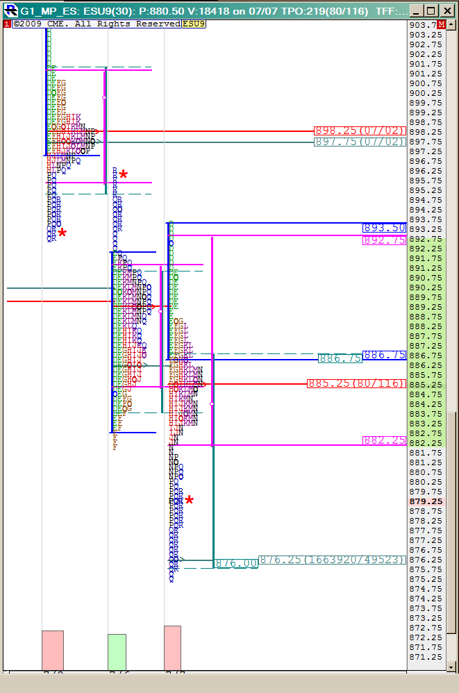 Это скорее нормальная вариация нормального дня, что особенно хорошо видно по форме профиля, которая практически соотв. достроенному колоколу. В течение дня были сомнения и нехватило убежденности для сильного трендового движения вниз. По степени убежденности нормальная вариация как раз находится посередине среди всех типов дней, так что ждем дальнейшего развития событий. Ситуация двойственна, закрылись внизу, что в актив медведям, но до нижней границы майского коридора в районе 872.75 не дожали, что говорит об относительной неуверенности продавцов.То есть вчера (у вас сегодня) был ненастоящий трендовый день?