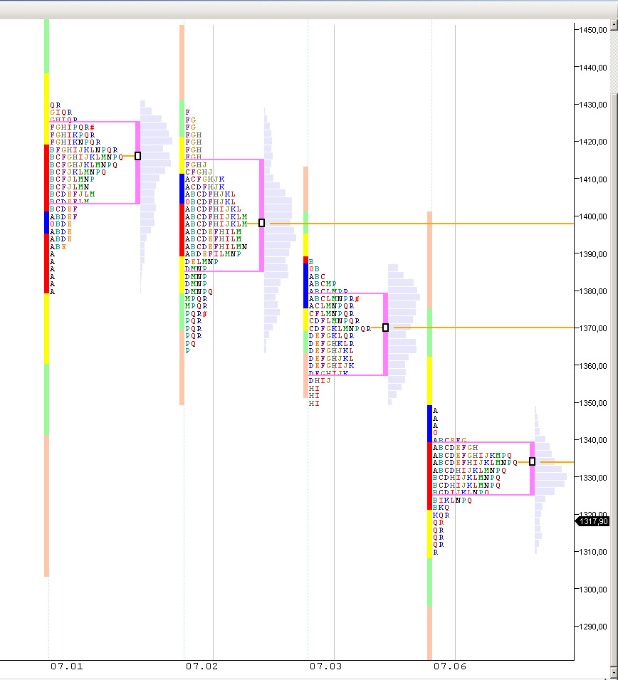 вот как например выглядит график МР для Гагпрома с индикатором Market_Profile_by_Sirtrade