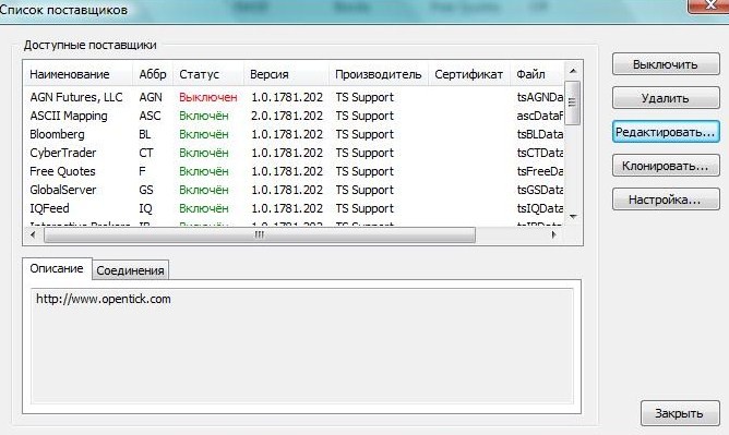 P.S. Если в списке нет твоего поставщика, не проблема)) в директории, где установлен мультичартс, находишь папку Datefeeds и в нее копируешь dll-ку от своего провайдера котировок, после этого он появится в списке.
