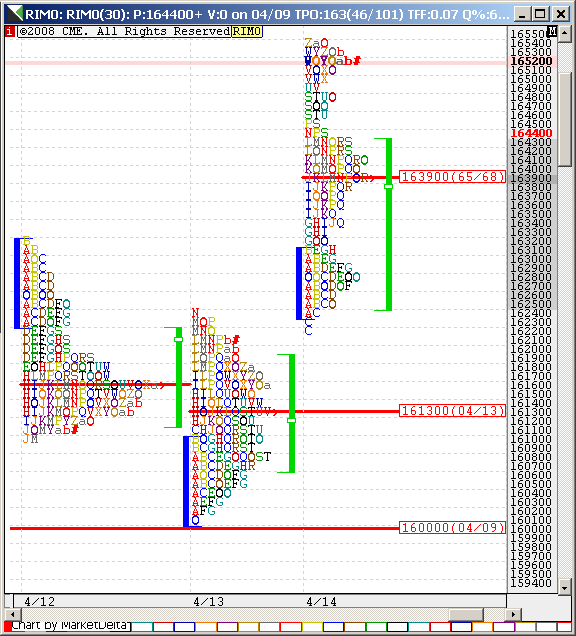 РОС подняли до 1639.50. Объёмный ещё чуть повыше. В последний час торгов контр-атака медведей (или фиксинг лонгов?) была остановлена уровнем диапазона позавчерашнего дня (зел.линия). Что остановило продвижение вниз с утра на "С" - не понял - мне профиль не даёт ответа (: .