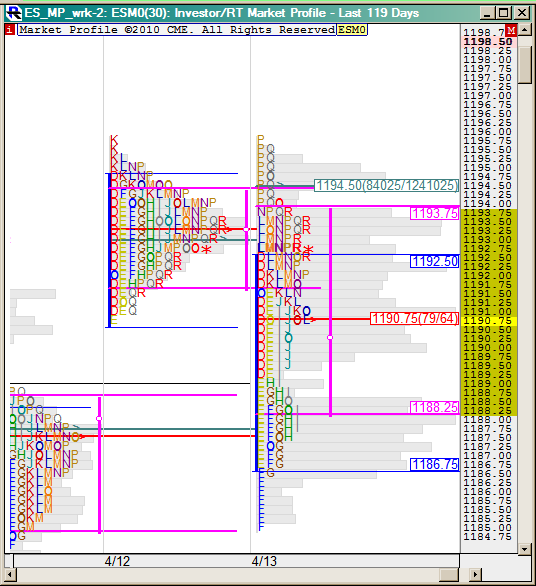 Нейтральный, но не шумовой. В шумовой день торговать просто невозможно, кроме как скальп ради 100 пунктов. Это когда узенький начальный баланс и за его пределы не выходим. Профиль получается с большим количеством TPO на каждом ценовом уровне, в рамках узкого торгового диапазона. У нас такие дни обычно, когда в Штатах выходные.