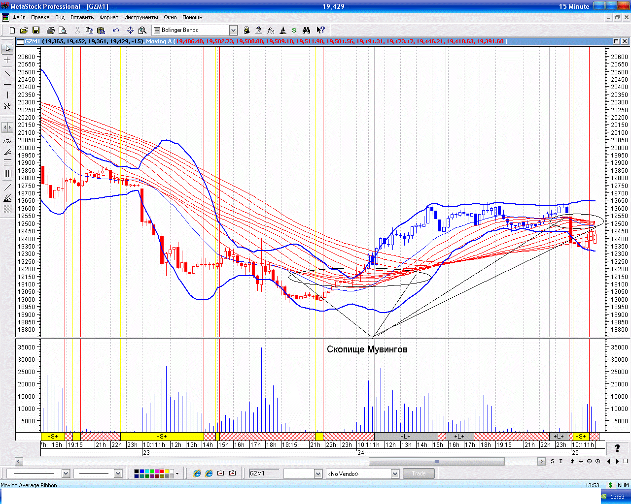 Не хочешь МТ4 освоить?Там можно в реале всё смотреть..В UMIS...из БРОКО акции убрали,только индекс оставили..Интересный индикатор подсказали - Moving Average Ribbon.