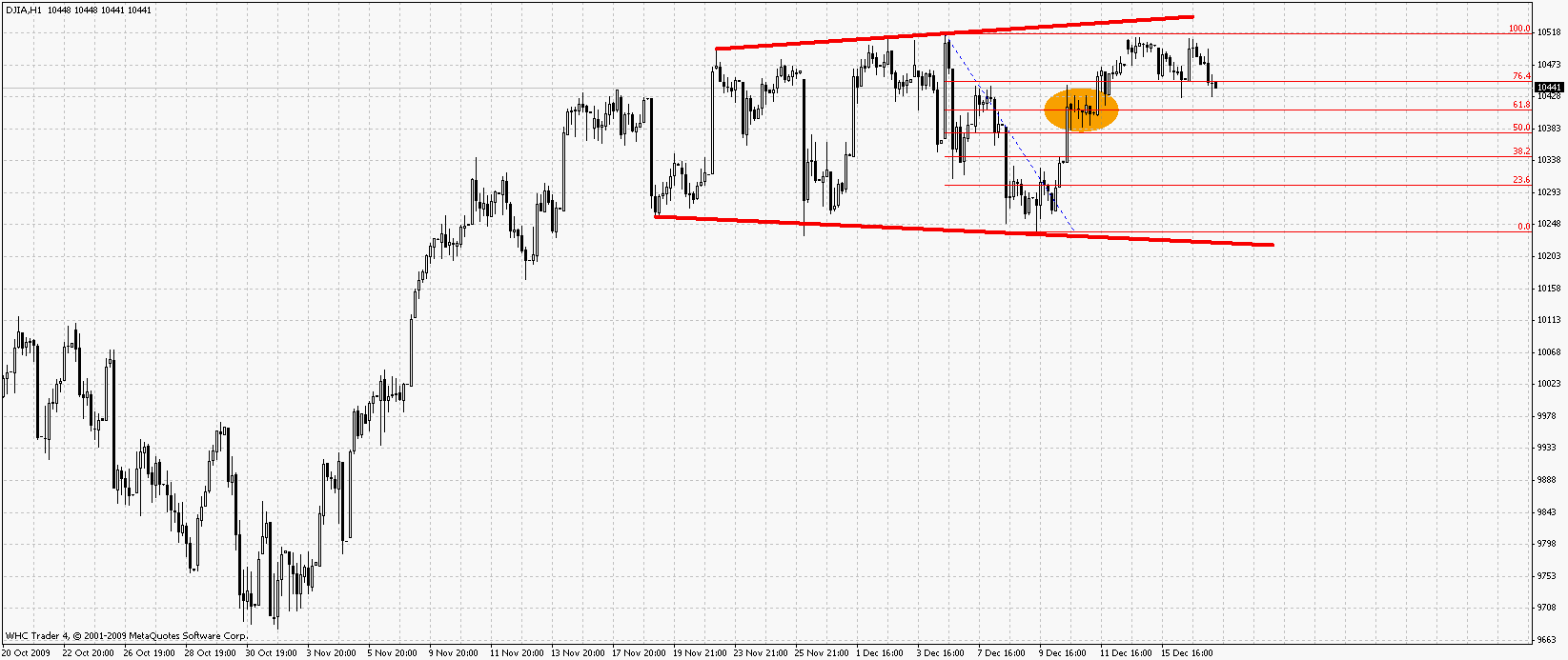 обратите внимание как доу защищал уровень 61,8% в овале - это критический уровень по Нили...если бы он отскочил от него вниз - да залив должен был бы быть...